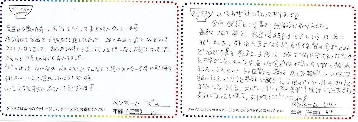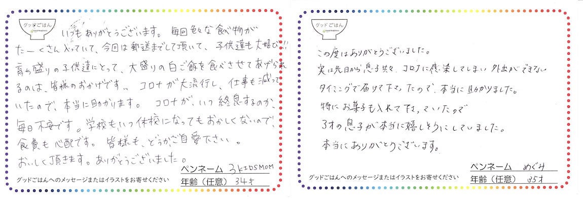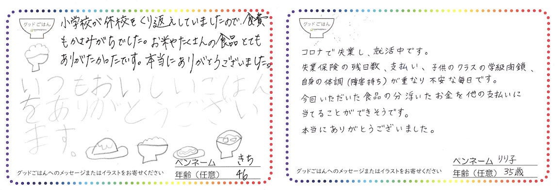 【2022年1月〜3月の間に届いたグッドごはん利用者からのハガキ】