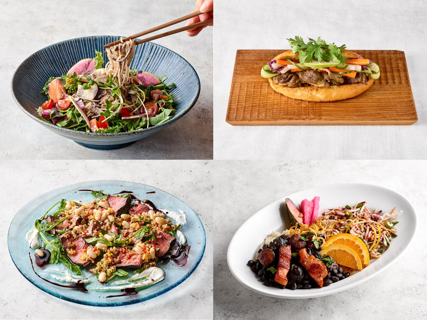 アサイーでマリネしたローストビーフに、キヌア、白インゲン、レンズ豆を加え、酸味のあるチーズソースとコク深いアサイーのソースでサラダ風にお召し上がりいただけます。