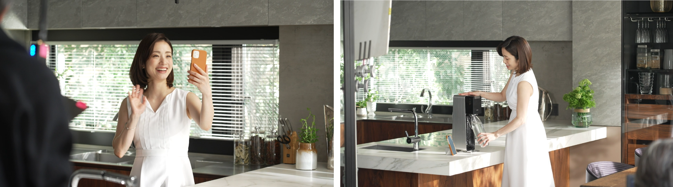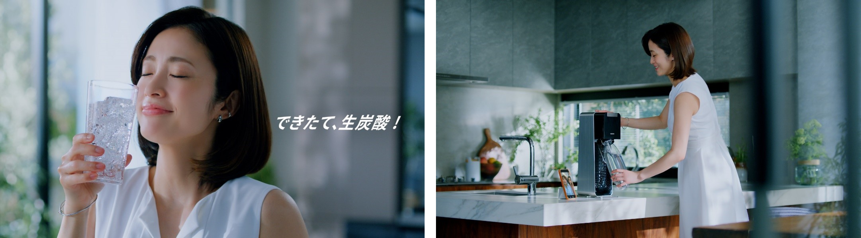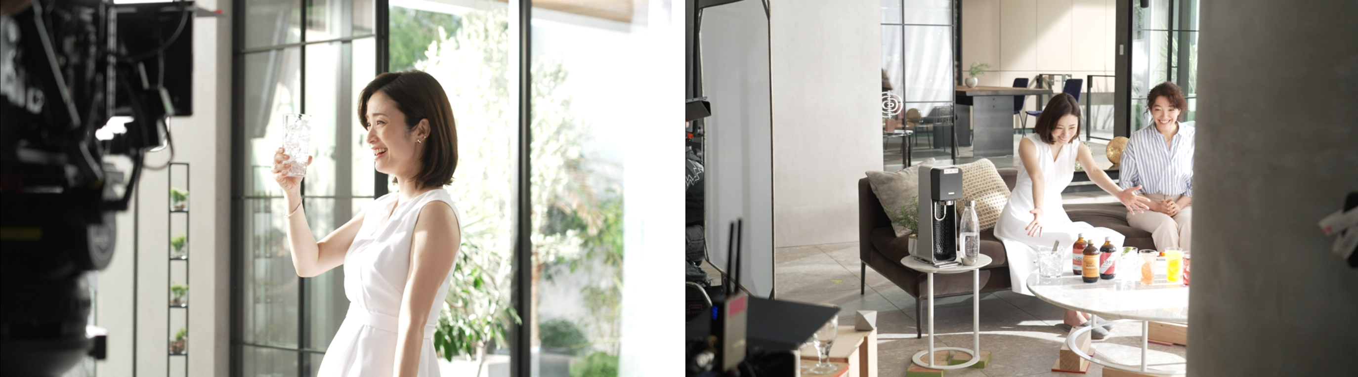 ソーダストリームで生炭酸を作るシーンは、CM出演4度目ともなり、これまでよりもさらに慣れた手つきで操作。突然、利き手とは逆の手でボトルをセットすることになった場面でも難なく操作し、スムーズに撮影が行われました。