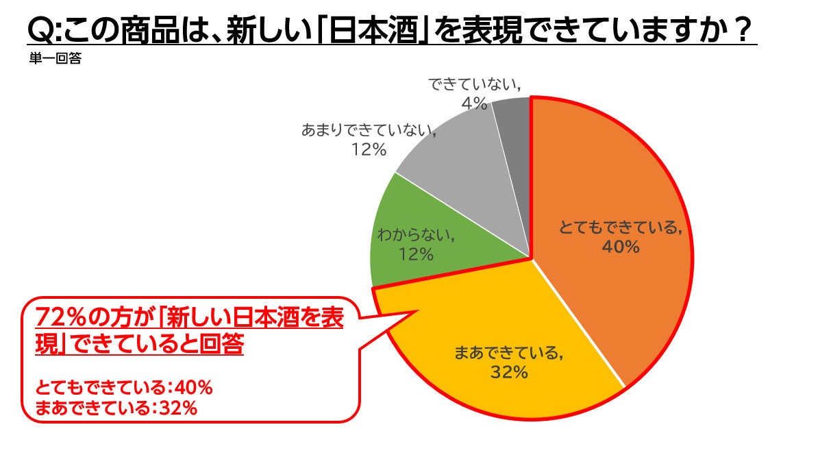 実際にこの日本酒を飲んだ72%の方が、「新しい日本酒を表現している」と回答する結果となりました。