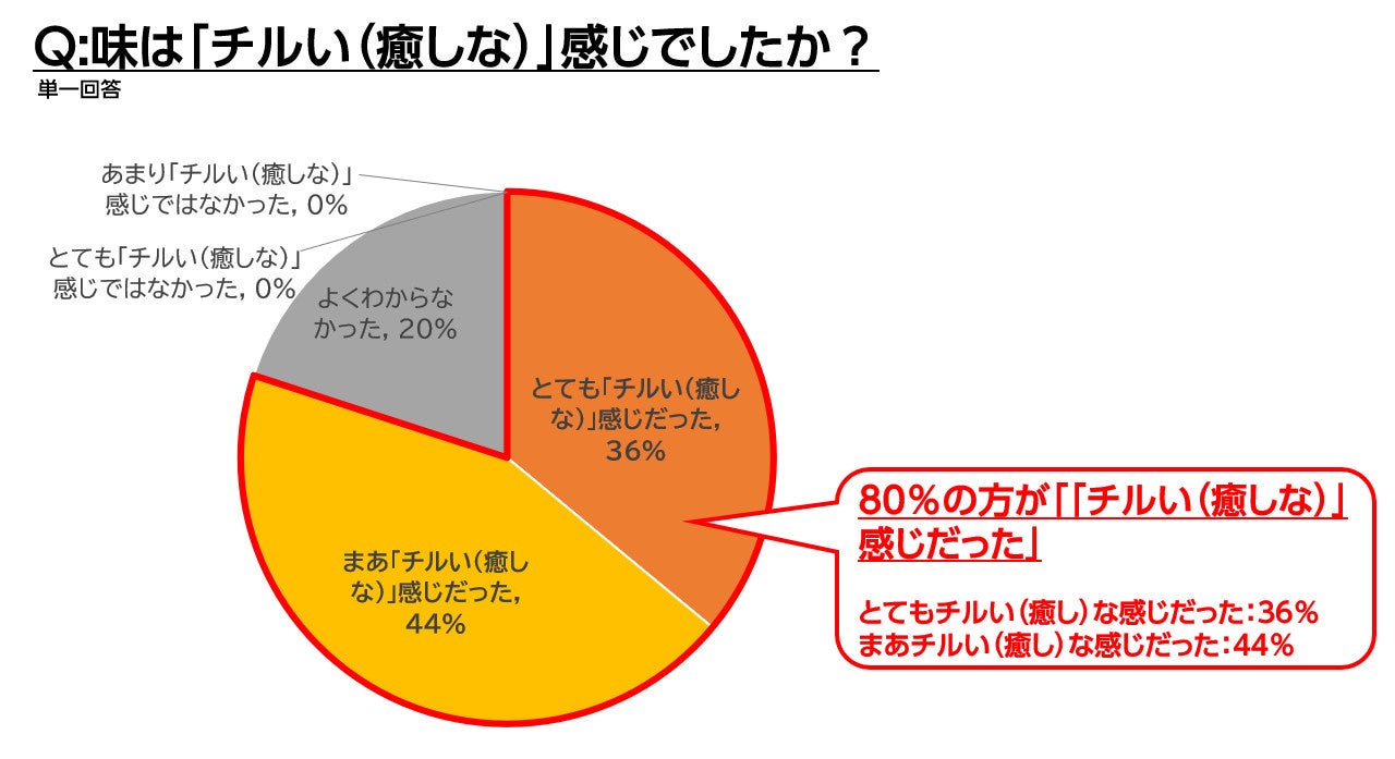 ⇒80%の方が「チルい(癒しな)」感じだったと回答。