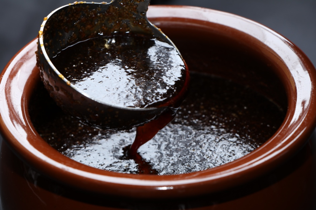 創業100年を誇る福岡県の老舗醸造所の醤油をベースに使用。この醤油が持つ旨味と甘みに、韓国青陽産唐辛子でアクセントをつけ、しっかりと熟成させました。ごはんとの相性を第一に考えた「究極のタレ」です。