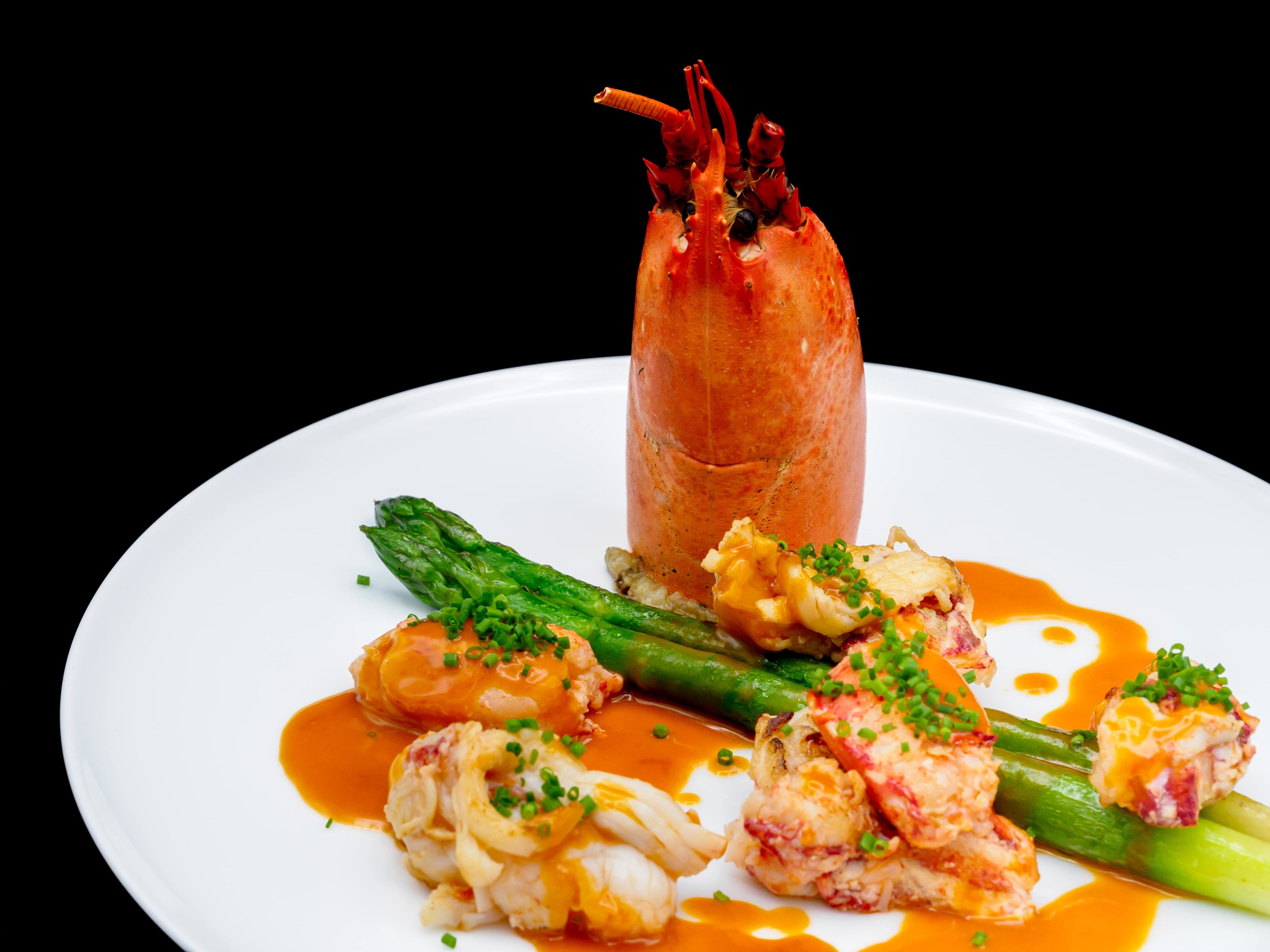 アスパラガスの苦味がロブスターの甘みをさらに引き立てます。