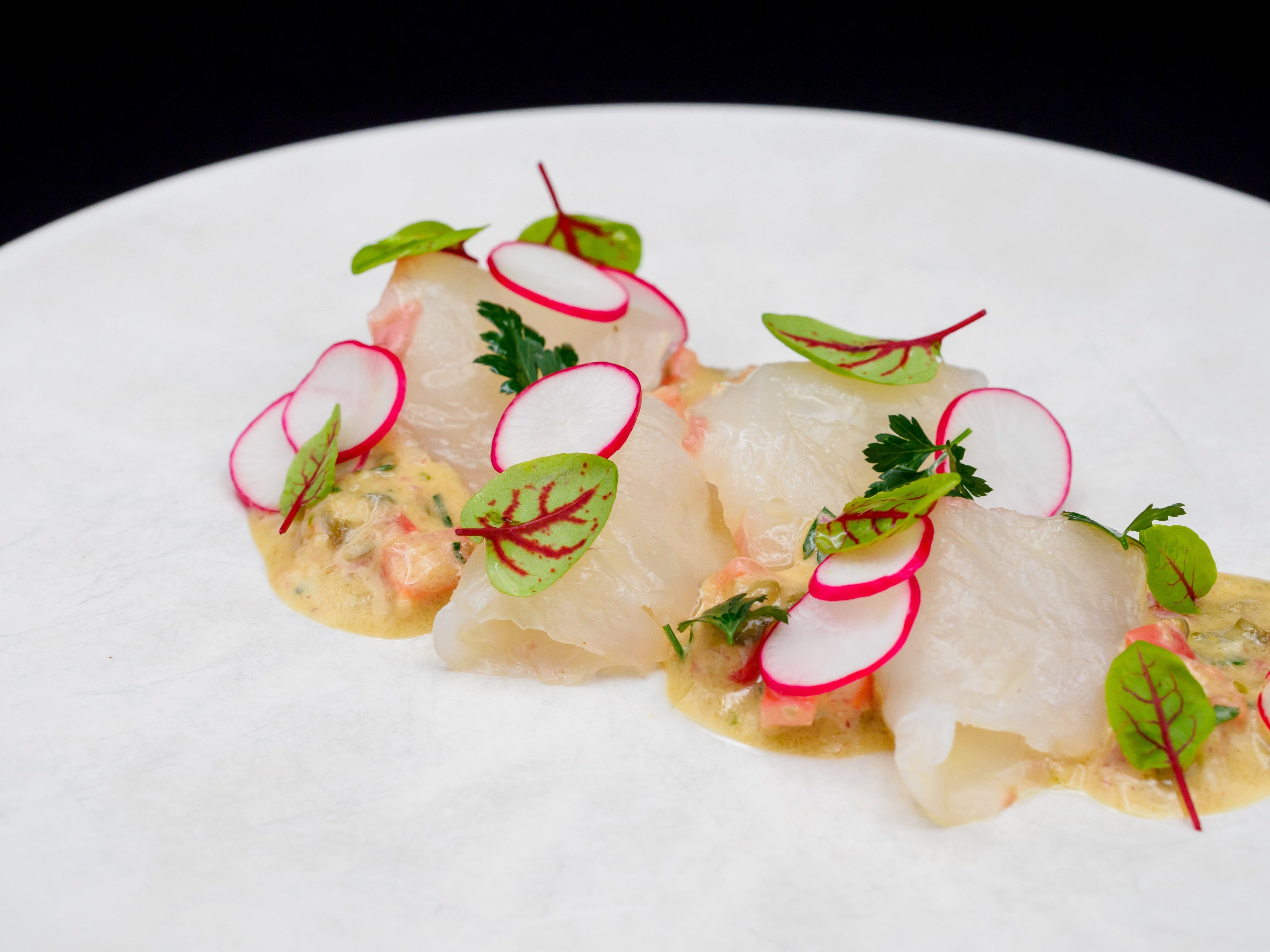 ソースはケッパーやエシャロット、シェリービネガー、レモンオイルなどを使用したラヴィゴットソース。