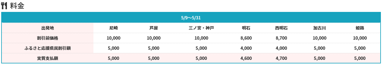 ※播但豊岡エリアの方は、料金を算出いたしますので、お問合せください。対象コース: