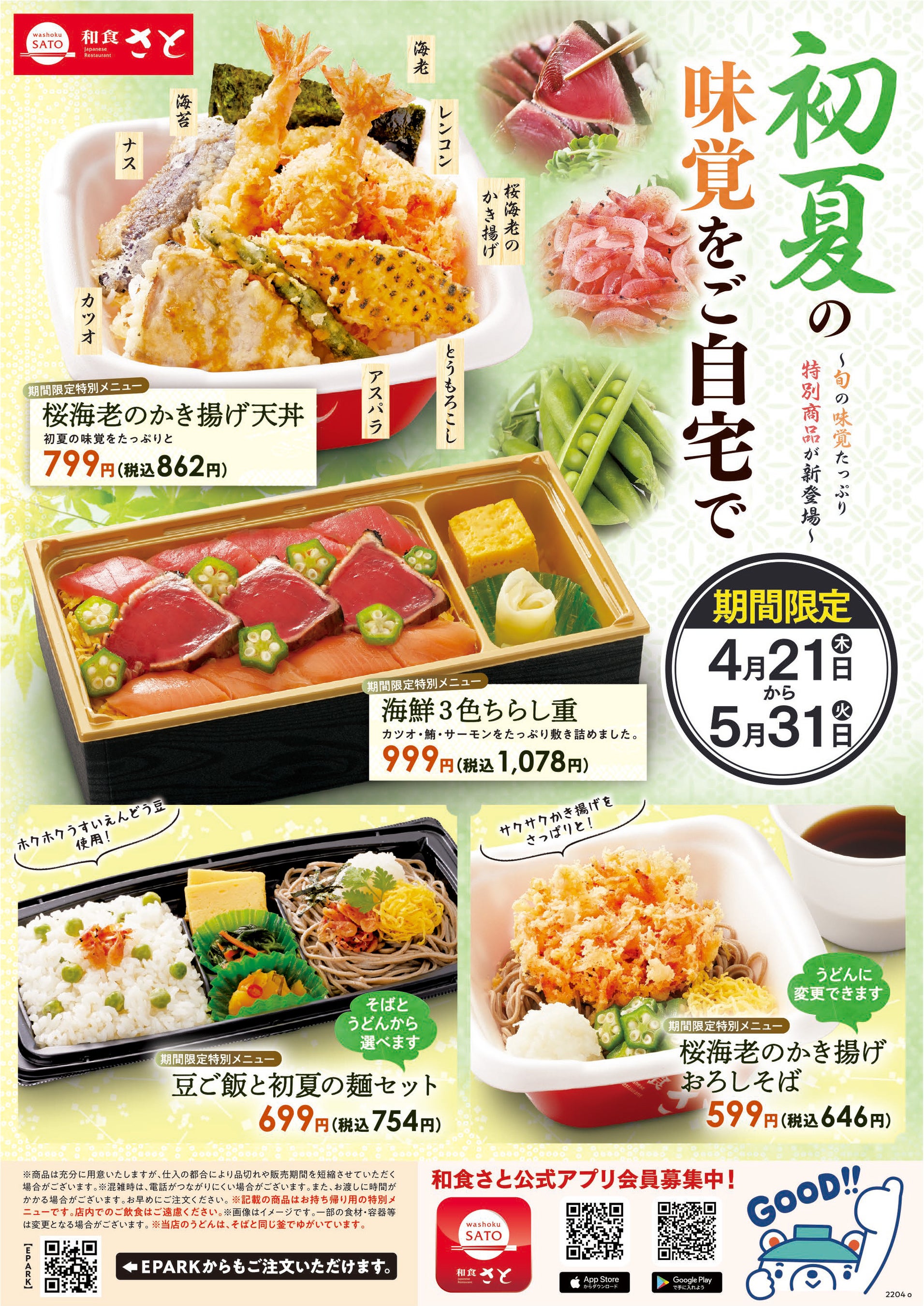 人気商品がお得になるこの機会に、いつも和食さとをご利用頂いているお客さまも、初めてご利用頂くお客さまもさとのテイクアウトをぜひお楽しみください。