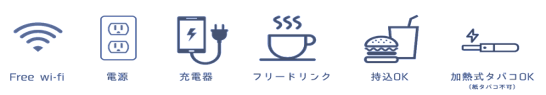 ウーバーイーツなどの宅配サービスも利用可で、好きな飲食を持ち込んで楽しんでいただけます。