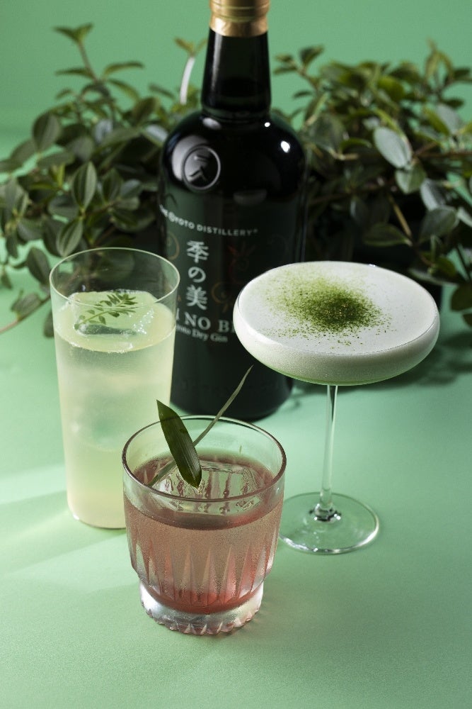 また、ハイティーに合わせて、京都蒸留所のプレミアムクラフトジン「季の美」とのコラボレーションで、“Forest”をテーマにしたボタニカルなオリジナルカクテル3種類もご用意いたしました。「季の美」は11種類 のボタニカルを味わいと香り別に6つのエレメントに分けて蒸溜するドライジンで、バーテンダーがそのエレメントに着目しそれぞれ の味わいを引き立てるカクテルに仕上げました。アラカルトメニューも充実していますので、ぜひカクテルとともにお楽しみください。