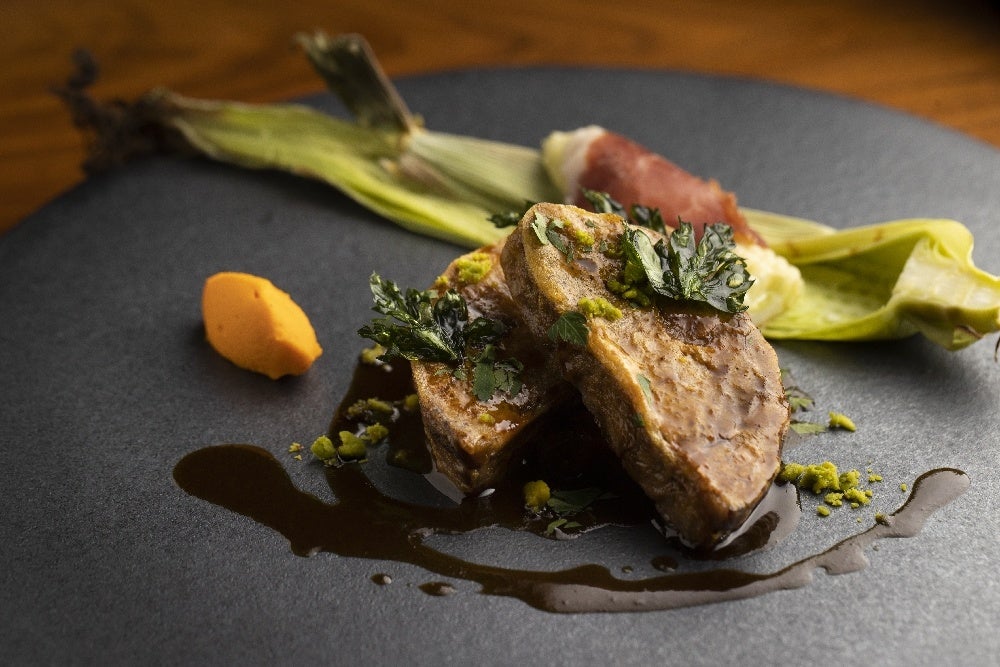 シストロン産仔羊のピカタ ピスタチオ風味のジュとピペラード