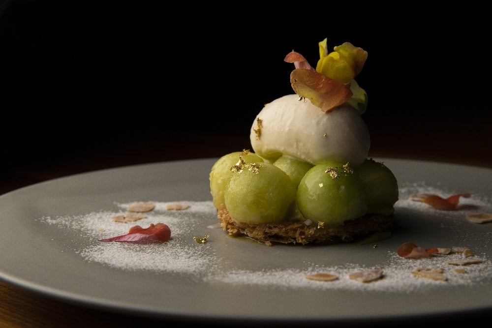 マスクメロンとピスタチオクリームのミルフィーユ 獺祭のアイスクリーム
