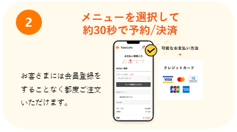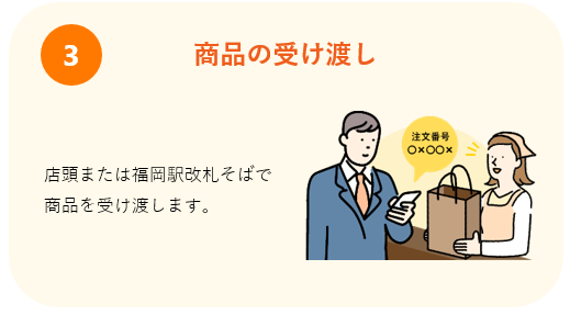 オンラインで注文していただいた商品(料理)を、西鉄福岡(天神)駅もしくは店舗で受け取ることができるサービス。