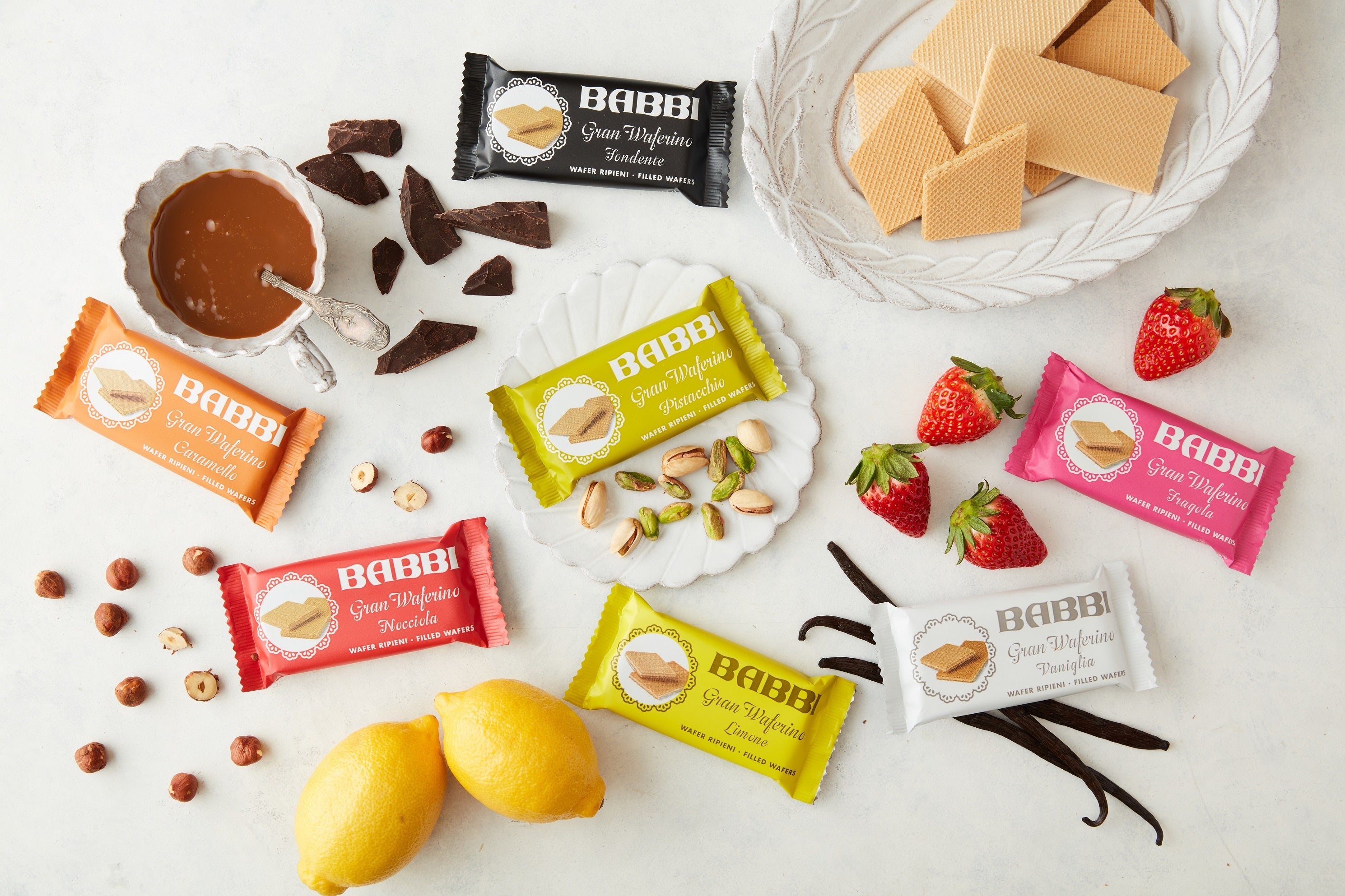 1952年にアッティリオ・バビ氏はジェラートメーカー向けの原材料、コーン、ウエハースを製造するBABBIを設立します。以降、「代々受け継がれた製法を駆使し、新鮮で上質な原料で最高の製品を生み出すこと」をポリシーに数々の高品質な製品を生み出し、創立70年を迎える現在、世界的に知られる、ウエハース・チョコレート菓子、ジェラート、製菓原料のブランドとなりました。