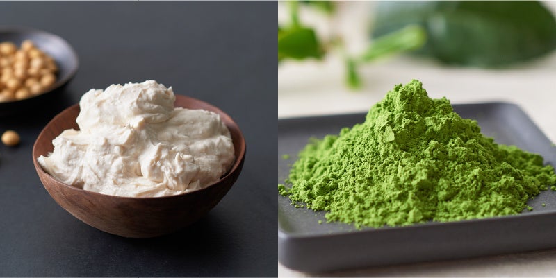 大豆固形分が18%も含まれている豆乳クリームを使うことで、豆乳の風味や、ふんわりやさしい味わいをより一層感じられる一品に仕上げました。深みのある抹茶の味わいと、しっかりとしたコクが広がっていきます。