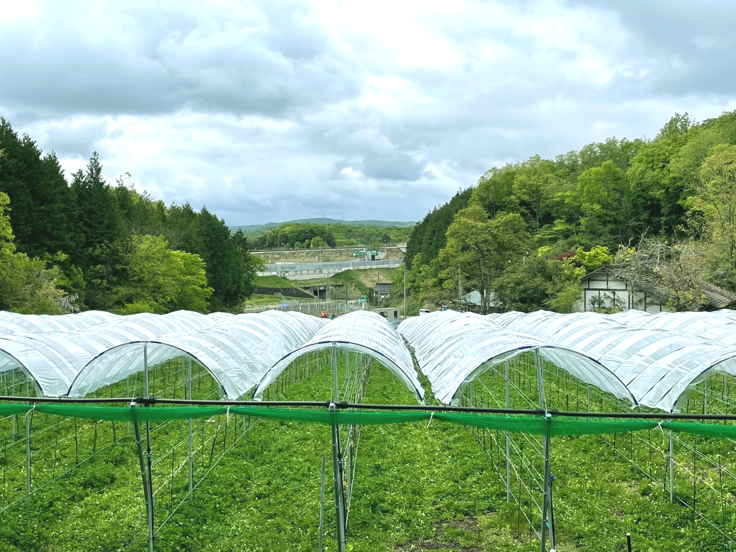 例年並みの気温で推移し、遅霜の被害もなく順調なシーズンのスタートとなりました。ゴールデンウィークが過ぎた頃から芽かき作業が始まります。昨年大発生した毛虫の被害もなく安定して芽が揃いました。棚栽培の畑には雨避けのビニールを設置し、収穫まで葉も実も雨に直接濡れない状態で健全な育成を促します。