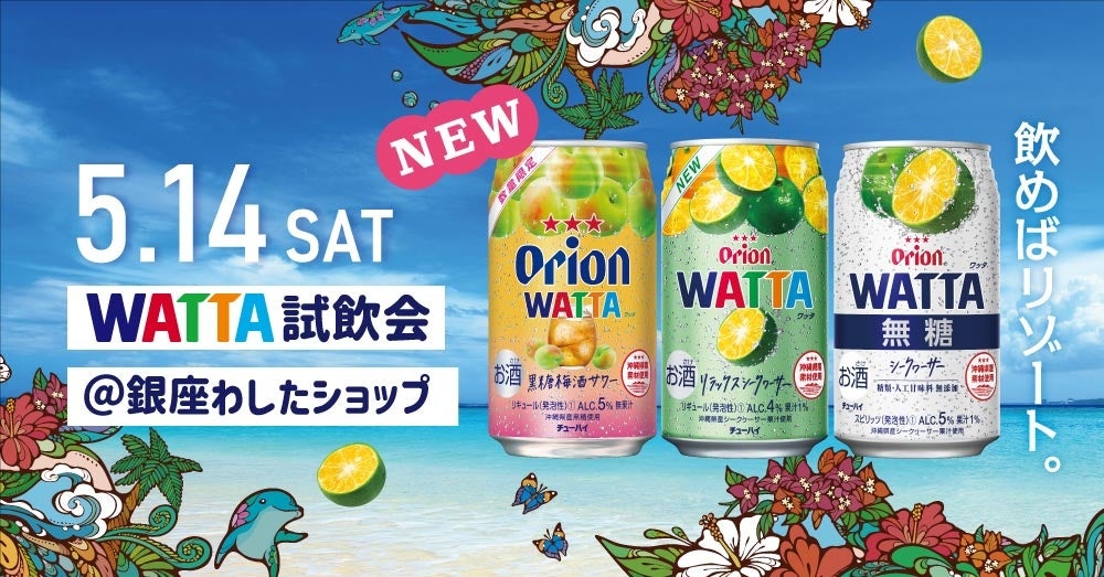 オリオンビール株式会社は、当社チューハイブランド「WATTA(ワッタ)」各種の試飲会を5月14日(土)に銀座わしたショップにて開催します。