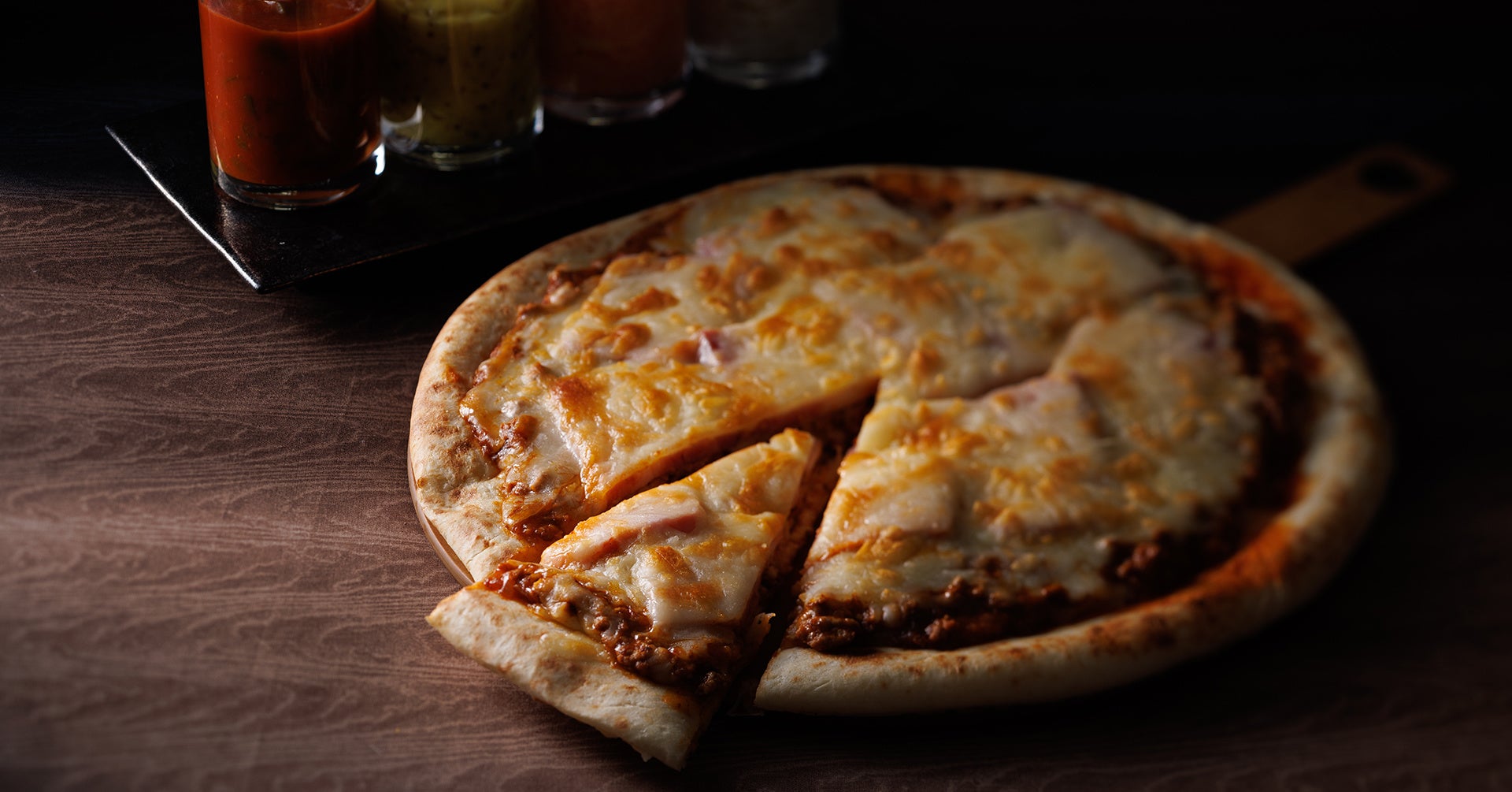 ラザニアのようなピッツァは、ボロネーゼソースとベシャメルソースを贅沢に使用。