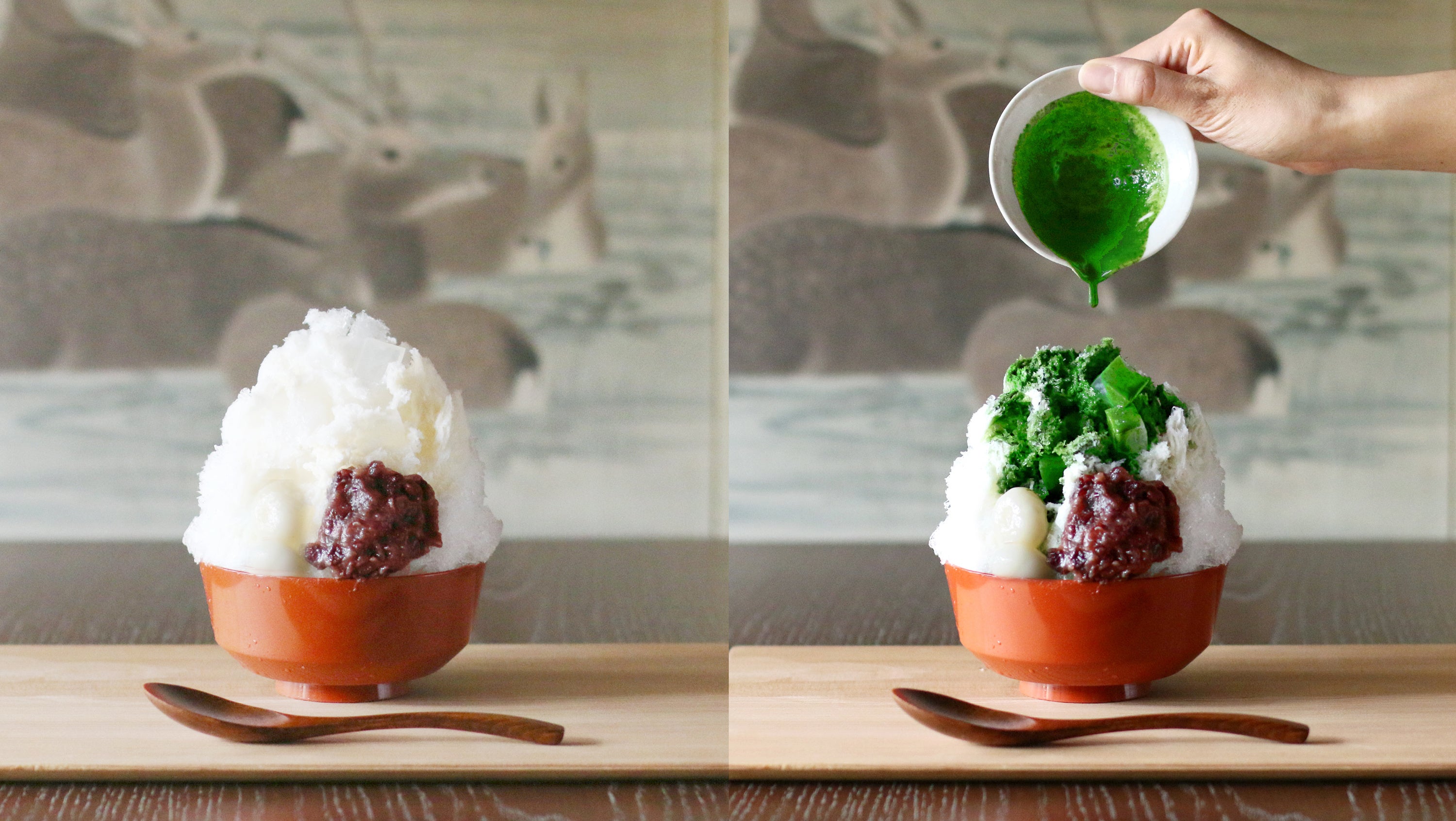 - かき氷をカスタマイズ!純白の氷を濃厚抹茶に“味変”