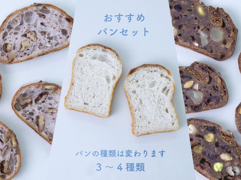 シニフィアン シニフィエのパンを3~4種類おためしいただける店頭でも人気の『おすすめパンセット 1,000円』や、パンに合わせていただきたいとセレクトしたマリアージュワイン、パンの原材料の生産者が手掛けるプロダクトなどご用意しています。