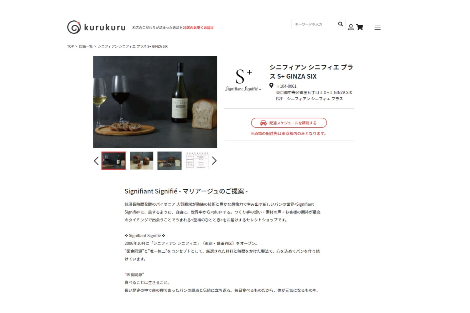 S+ GINZA SIX (シニフィアン シニフィエ プラス ギンザシックス)で取り扱う定番商品、限定商品や焼菓子、おすすめセット、ワイン、ジャムなどを、 長距離デリバリー「クルクル」でお届けします。