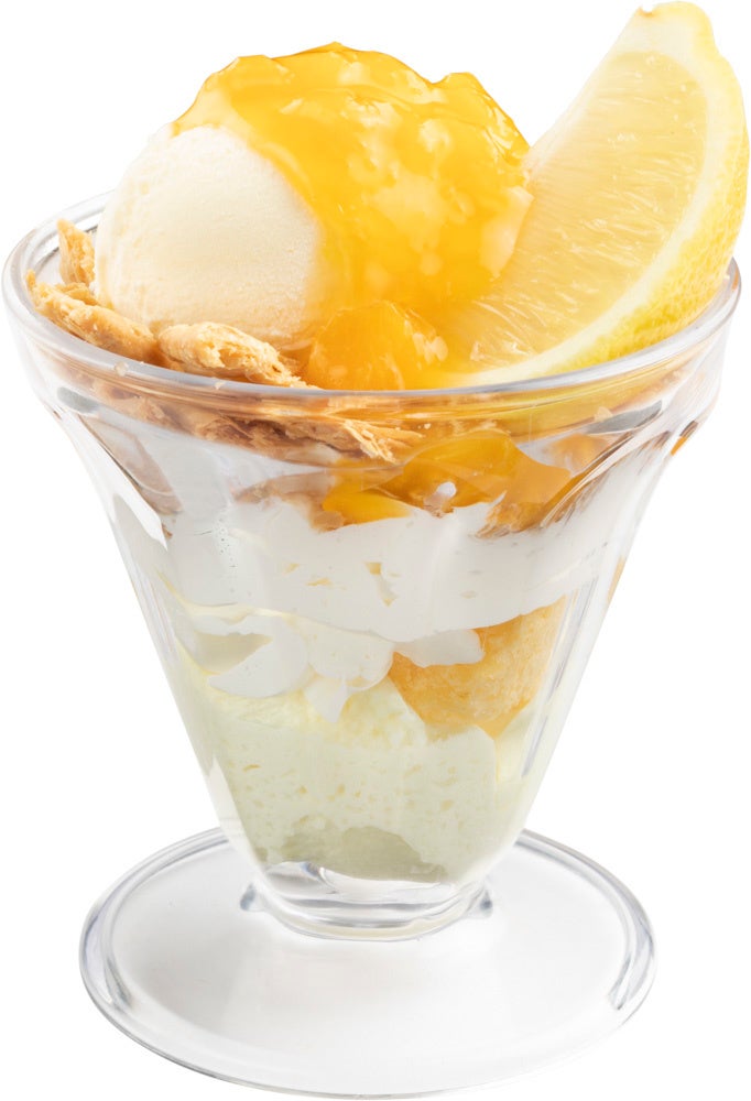 今回の新商品は、レモンとオレンジの爽やかさと、濃厚なレモンバタークリームがレアチーズアイスにマッチする初夏にぴったりなパフェです。特にこだわったポイントは、レモンバタークリーム。北海道産のバターにイタリア産レモン果汁を加え、丁寧に炊き込んだレモンバタークリームは濃厚で、果肉入りのオレンジソースと相性抜群です。濃厚なレモンクリームに、レアチーズアイスにかかるオレンジソース、さらに中にはサクサク食感を楽しめるパイクラムもあり、様々な食感を楽しめるパフェが登場します。レモンをお客様に絞っていただくことでよりフレッシュな香り・爽やかさもお楽しみいただけます。
