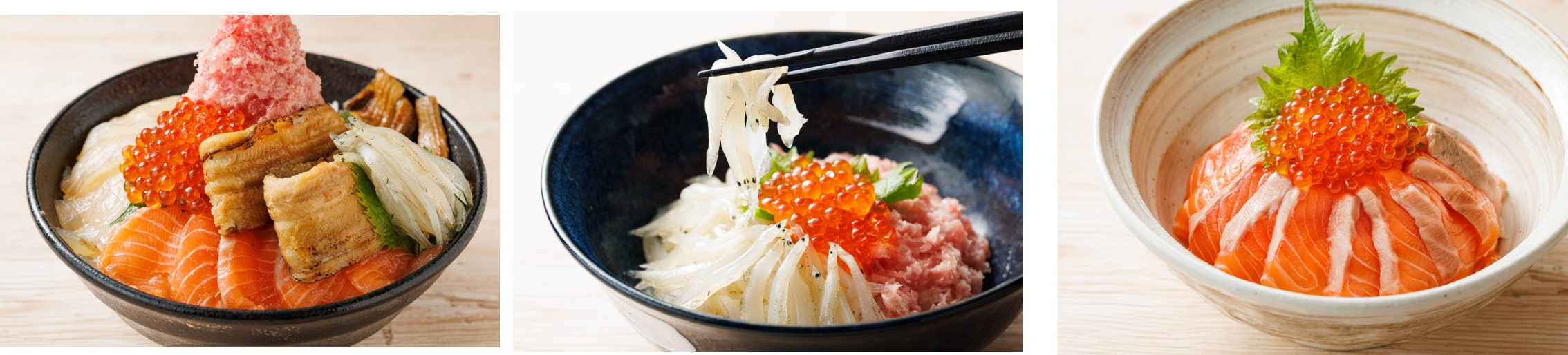 - 新鮮魚介の海鮮丼や名物料理を味わおう!全国から厳選食材が勢ぞろい!!
