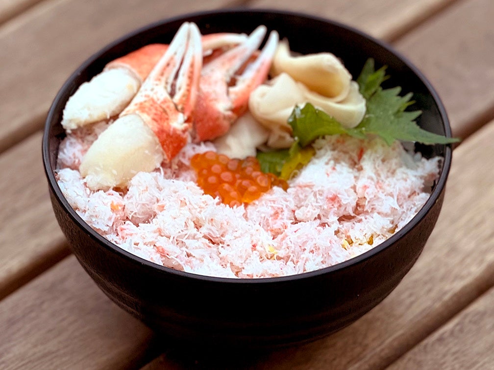マグロ、サーモン、カニなど北海道名産の魚介を丼に詰め込んだまさに北海道づくし。