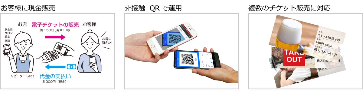 「Shop-Ticket」は、店主様自身で自店のサービスを簡単に電子チケットにして販売することができます。10回分の値段で11回分のサービスなどの特典を付け販売すれば、お店、お客様、双方にメリットがあり、応援したいお客様に購入いただけます。紙のチケットと同じように店頭販売出来るので、お店のサービスを前売りで現金化することができます。