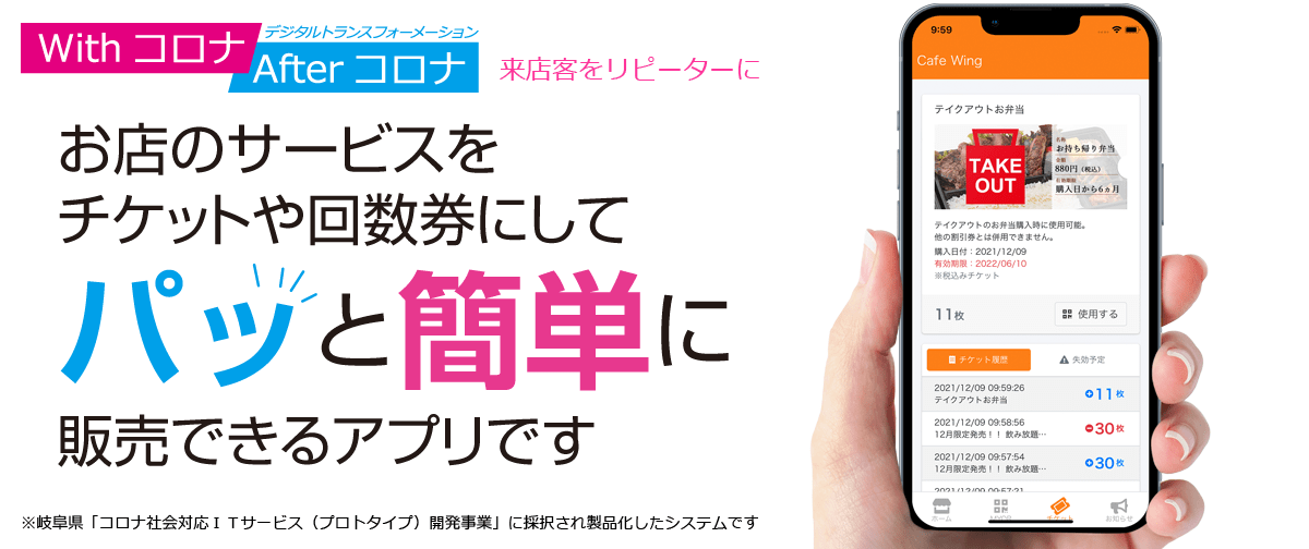 「株式会社WEB-WING」(ウェブウイング)(岐阜県大垣市、代表取締役 羽田 敏也)は、岐阜県が実施する事業「コロナ社会対応ITサービス(プロトタイプ)開発事業」(2020年度)に採択された、「Shop-Ticket(ショップチケット)」を製品化しリリースいたします。