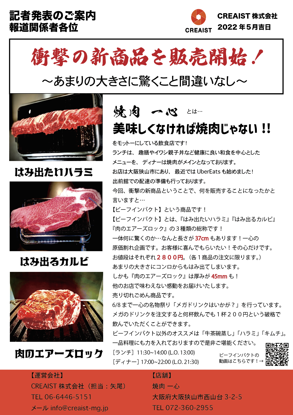 【ビーフインパクト】とは、「はみ出たいハラミ」「肉のエアーズロック」「はみ出るカルビ」の3種類のメニューの総称です!