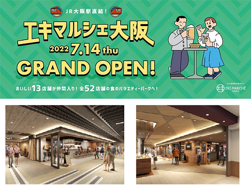 毎日をもっと楽しく「おいしい通勤」を大阪駅からご提案。飲食店を中心としたバラエティ豊かな13店舗の食のゾーンが新たに開業。全52店舗の食のバラエティパークあたらしい「エキマルシェ大阪」がJR大阪駅についに完成します!