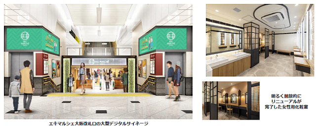 - 4.大阪駅構内最大級! エキマルシェ大阪改札口に、大型 デジタルサイネージ「エキマルカイサツビジョン」を 設置 !通勤のお客様に「おいしい」 情報を毎日 楽しく 発信。化粧室のリニューアルや喫煙ルーム、銀行 ATM の設置も!