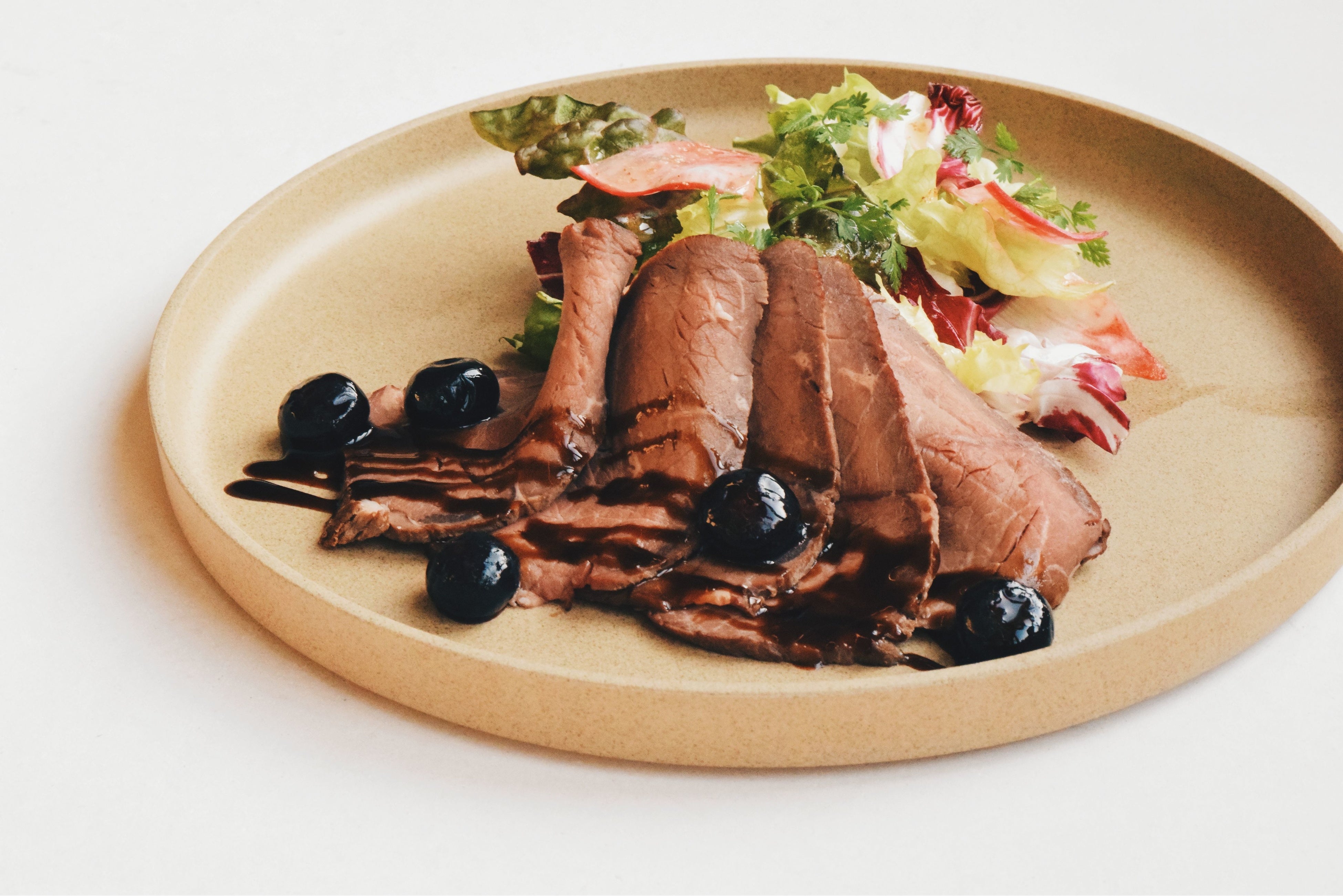 ローストビーフ~大鹿産ブルーベリーのバルサミコ酢ソースがけ~