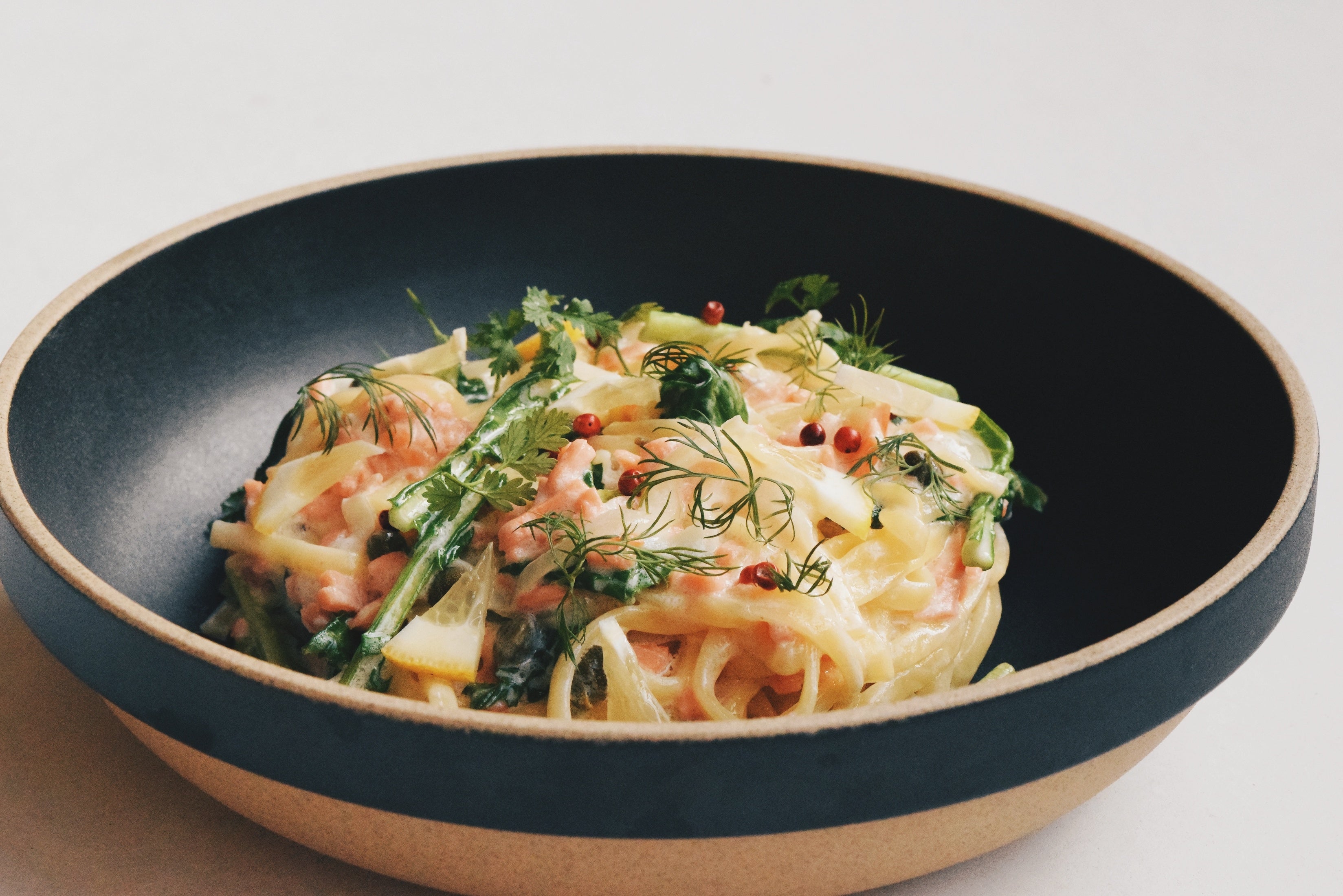 大鹿味噌のサーモンクリームパスタ