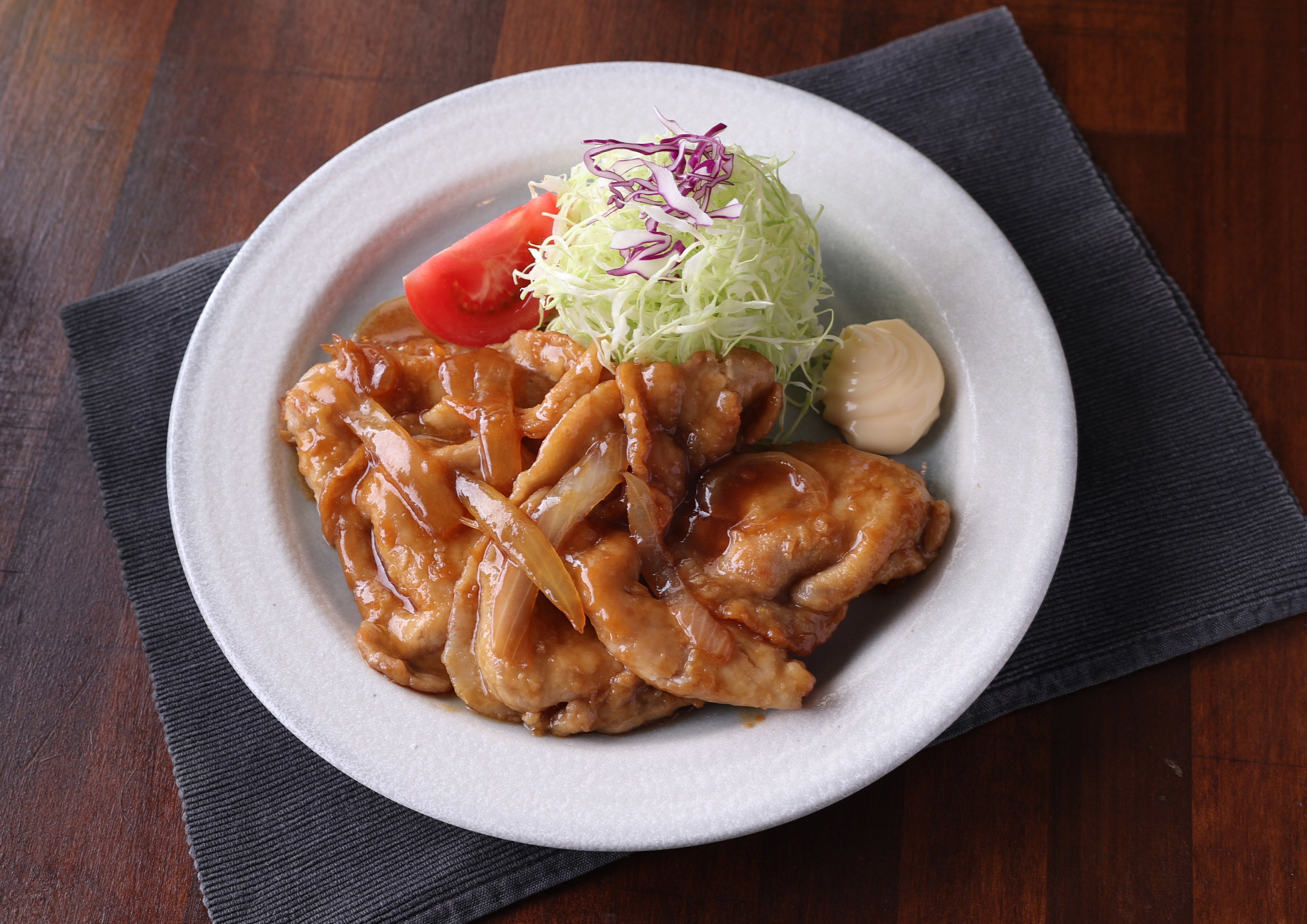 商品詳細:肉質が柔らかくさっぱりとしたうめ豚を、粗目のみじん生姜を効かせた自家製のタレで仕上げています。肉の旨味が逃げないよう強火でさっと調理したスタミナ満点の一品です。