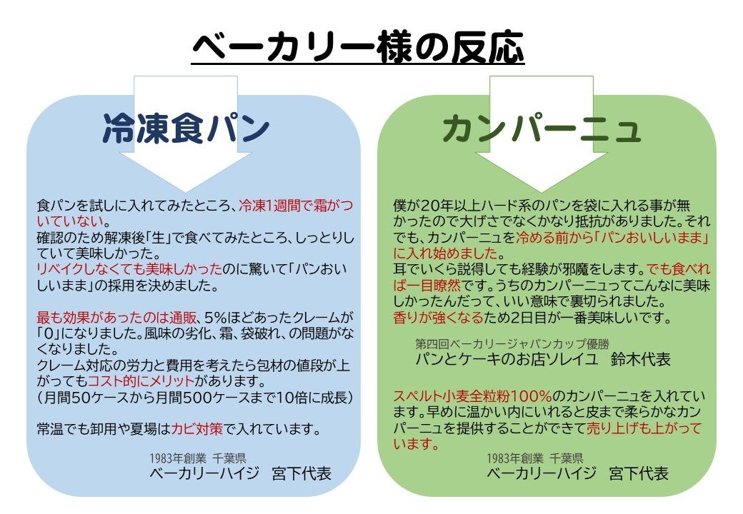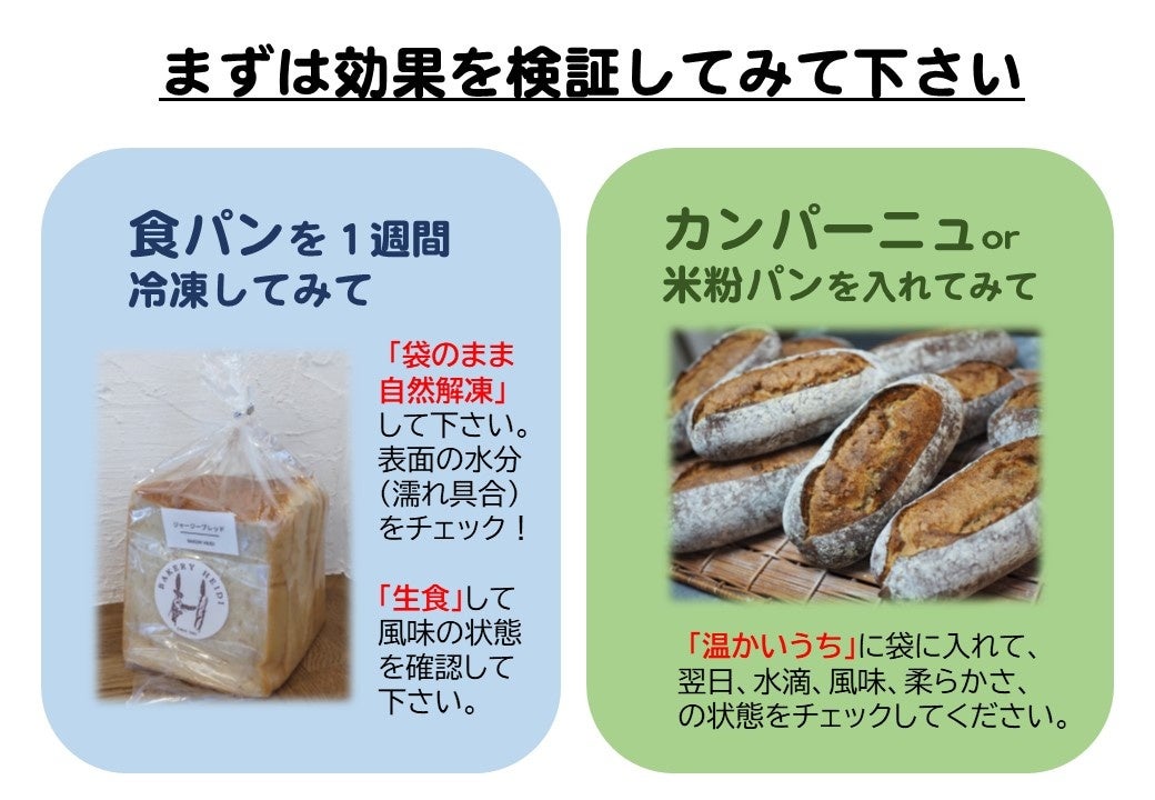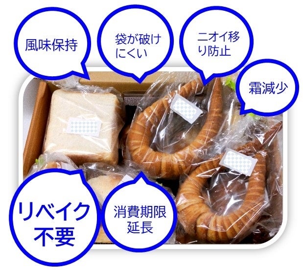 業務用「パンおいしいまま」は冷凍パンの品質保持に有用で、ベーカリーの冷凍通販に採用されています。