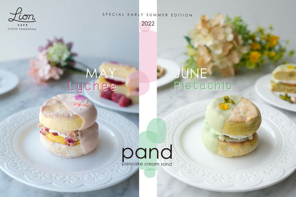 ▽pand(パンド)とは、京都美山の牧場牛乳と京都産の小麦と卵を使用し、パティシエが丁寧に焼き上げるふわふわのパンケーキで、自家製クリームを挟んだ上品スイーツ。