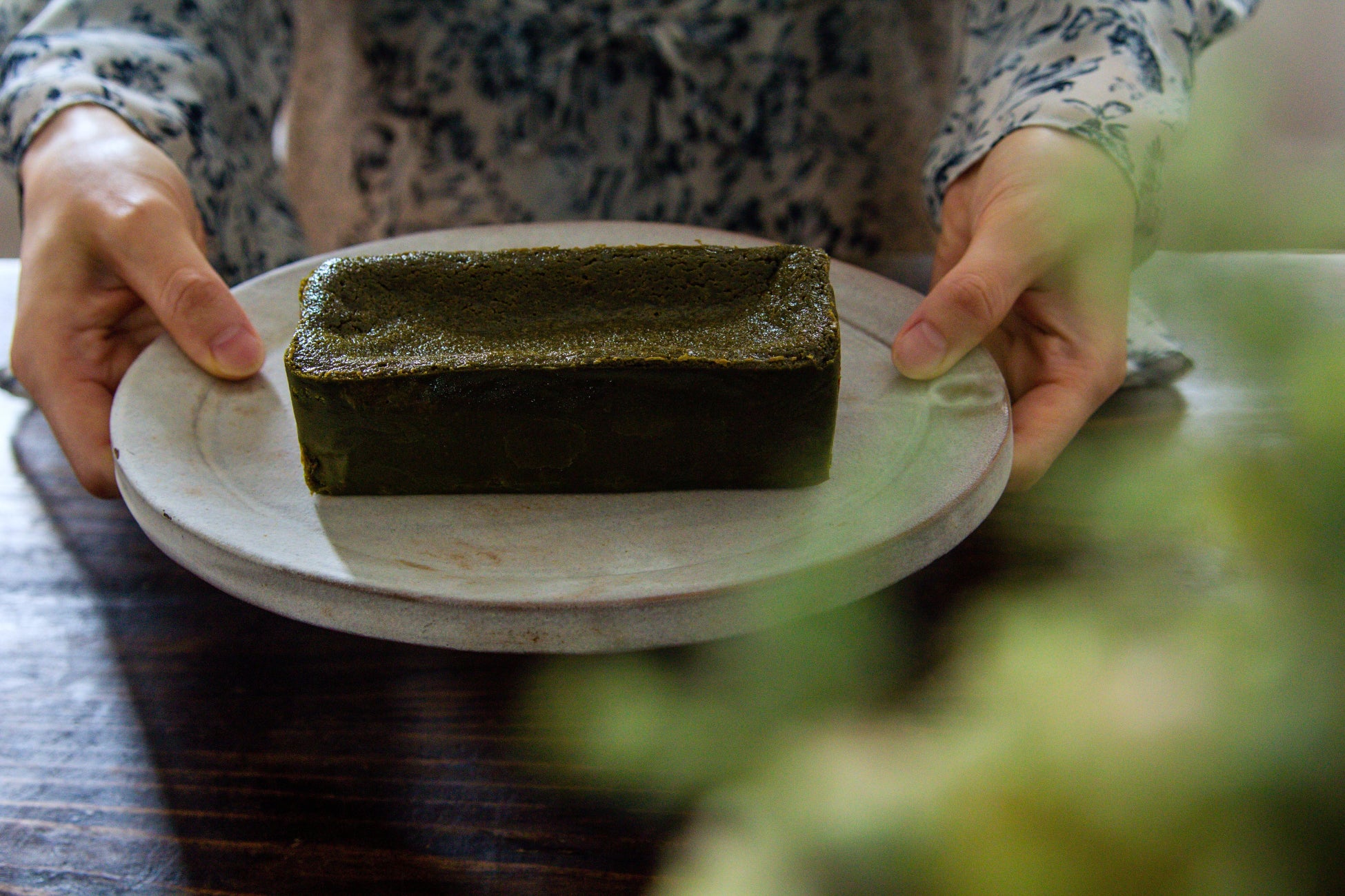 抹茶の色を出すことにこだわり過ぎず、どうしたら特別な美味しさにできるかを考え抜き、ホワイトチョコレートをベースに高カカオチョコレート2種を配合。べリーのような鮮やかな酸味があるものとナッツのように芳香で濃厚なものを選びました。 抹茶で生ガトーショコラを作る時は、色を生かすためにホワイトチョコレートを選ぶといいのですが、これだけでは風味が単調に。香りのいい宇治抹茶を生かす割合で高カカオチョコレートを配合することで、口に含んだ瞬間にカカオの鮮やかな香りが広がり、次に抹茶が香って心地のいい余韻と共に消えていきます。また、少量入れている塩が、抹茶を引き立てています。