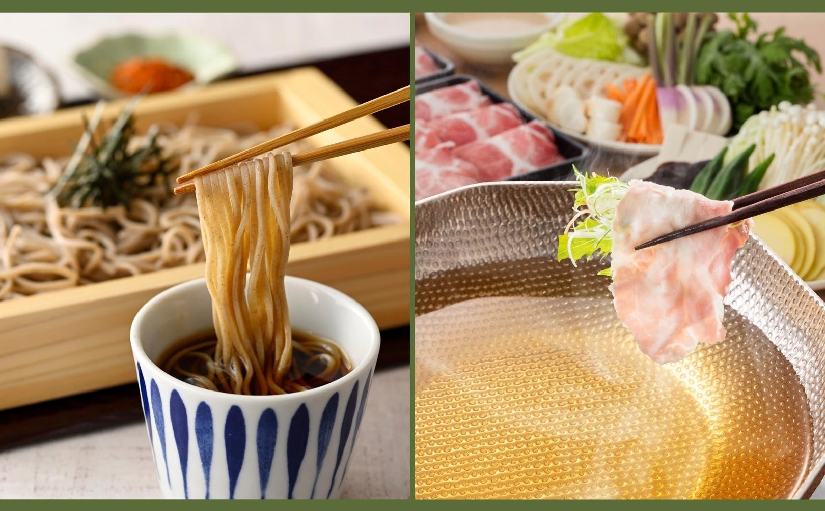 (グランブッフェ宮崎は、豚しゃぶ一皿が付いたプランとなります。生そばは、ライトコースからのご提供となります。ご了承ください。)