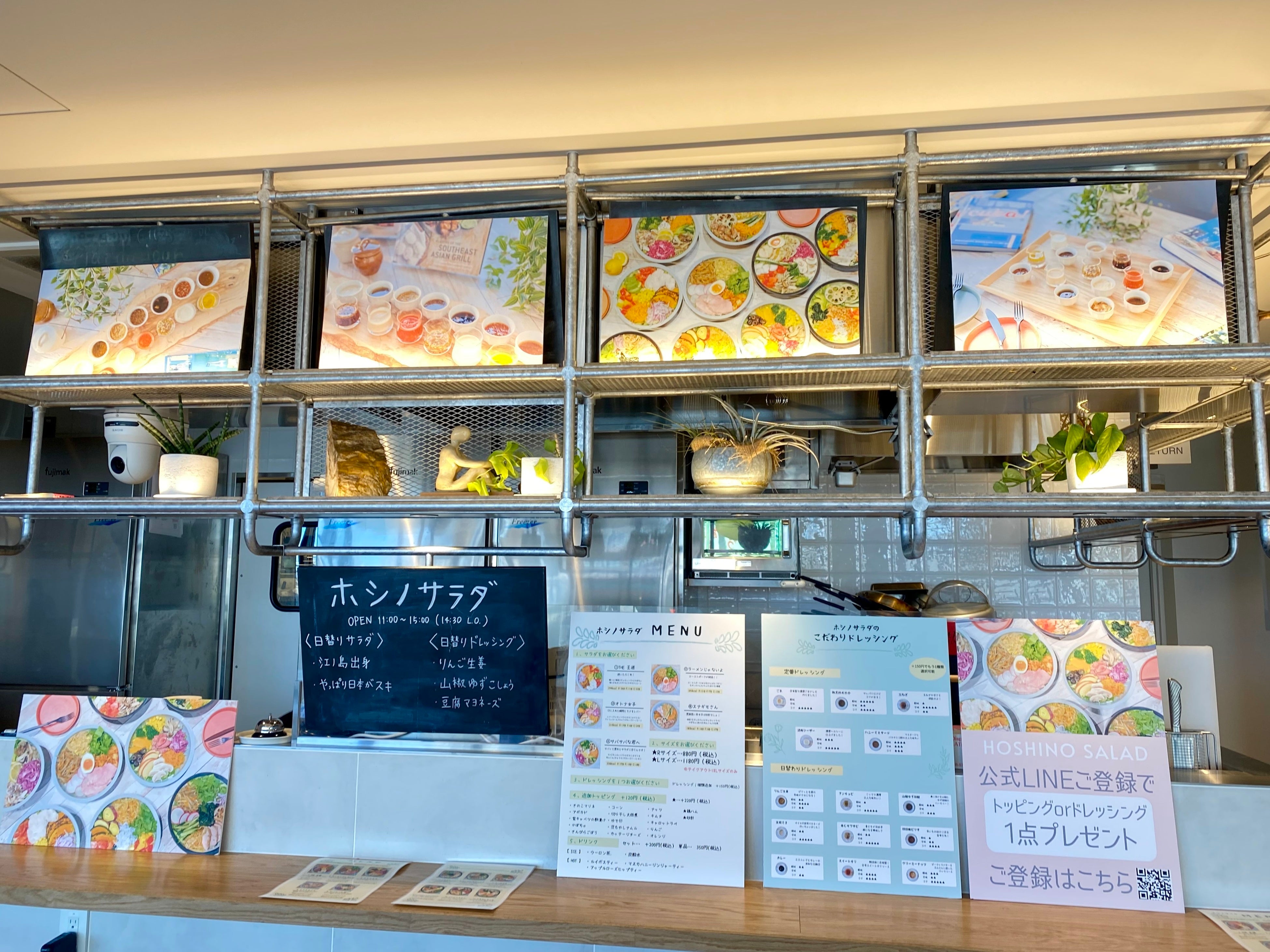 「ホシノサラダ」はK,D,C,,,にて、昨年12月に限定オープンしました。 この出店を通して皆さまからいただいた、沢山のお声やご意見から反省点や改善点を踏まえ、よりバージョンアップして、この度、再出店することになりました。 今回のホシノサラダでも、こだわりの詰まったサラダボウル(全8種類)を食べることができます。 「ラーメンじゃないよ」、「サバサバな君へ」、「オトナ女子」(レギュラーサイズ880円、ラージサイズ 1,180円)など、ネーミングに遊び心が満載です。調理法、調味料、ドレッシングにもこだわった安心安全な1品で、「毎日でも食べたい!」と、心と身体がよろこぶサラダボウルになっています。