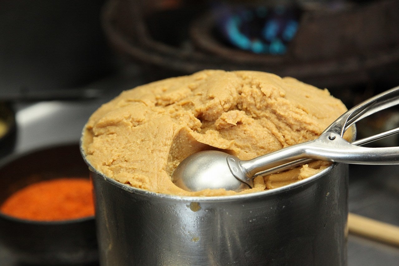 「ラーメン 雪ぐに」の味噌ラーメンは、熟成期間の異なる味噌を3種類ブレンドした特注品。『食堂ミサ』と同じ新潟県「太田醸造」の味噌を使用しています。一般的な味噌ラーメンとは違い、味噌だれを作らずに天然味噌をそのままスープに溶かし込むことにより、味噌本来の味とコクや風味を最大限に活かしつつ、長期熟成された天然味噌の特徴の一つである乳酸菌由来の爽やかな酸味がスープに広がり、味噌が苦手な方でもサッパリ食べられるラーメンです。