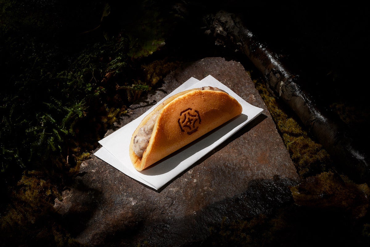 たっぷりのあずきバタークリームを、ふんわりもっちりのどらやき生地で包みました。十勝あずきで作られた、甘納豆のシャリッとした食感と、バターのなめらかな食感のかけ合わせが美味しい一品です。ワッフルのように生地を二つ折りにした、片手で食べやすい形状も特長です。