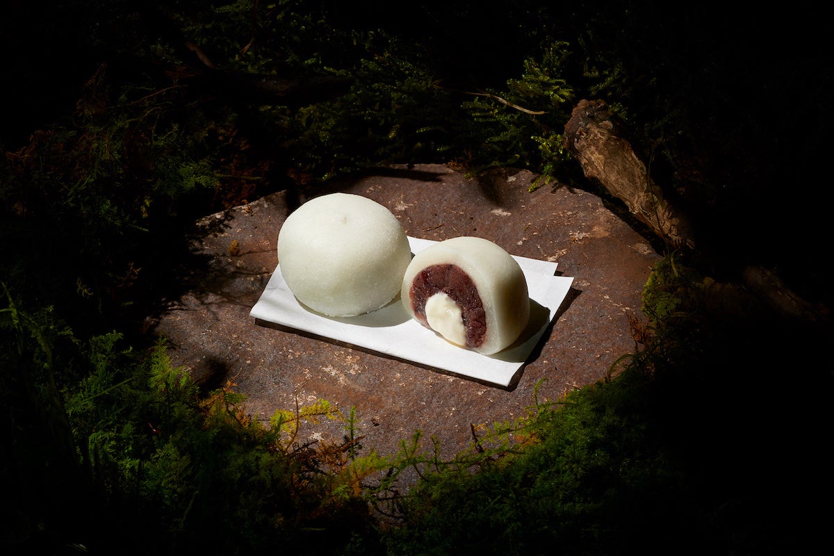 北海道産あずきを炊き上げたあんこの中にバタークリームをふんだんに入れ込み、これまでにない濃厚なコクを感じられる大福に仕上げました。滋賀県産のもち米に砂糖や水あめを加え丁寧に練り上げた羽二重餅は、絹のようなキメの細かさが特長。すべすべでやわらかな餅と、中からとろりとあふれ出るミルキーなバタークリームの組み合わせが新しい一品です。