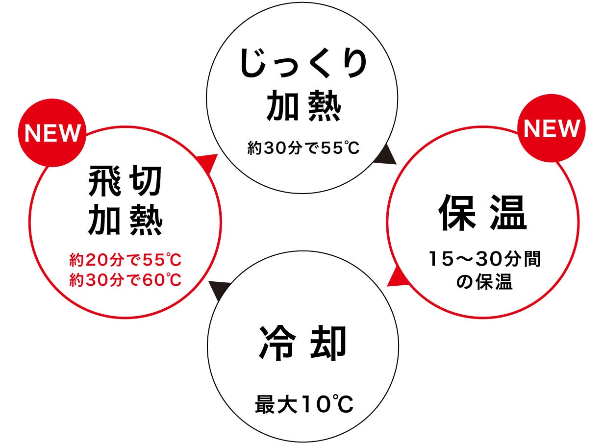 - 加熱性能の進化、飛切加熱モード・保温モードを追加