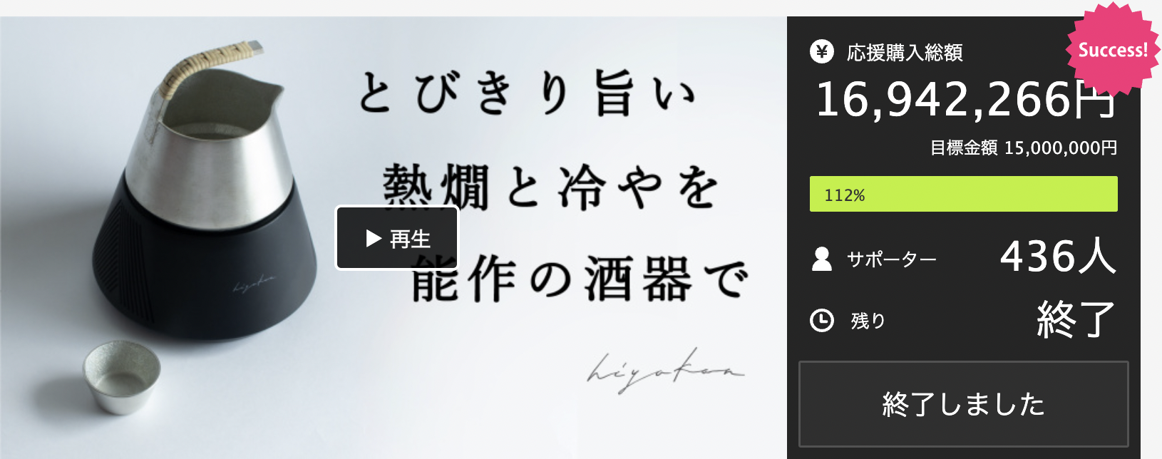 2020年に約1694万円もの多大なご支援を頂いた「hiyakan」がさらなる進化を遂げ新モデルとして登場します。