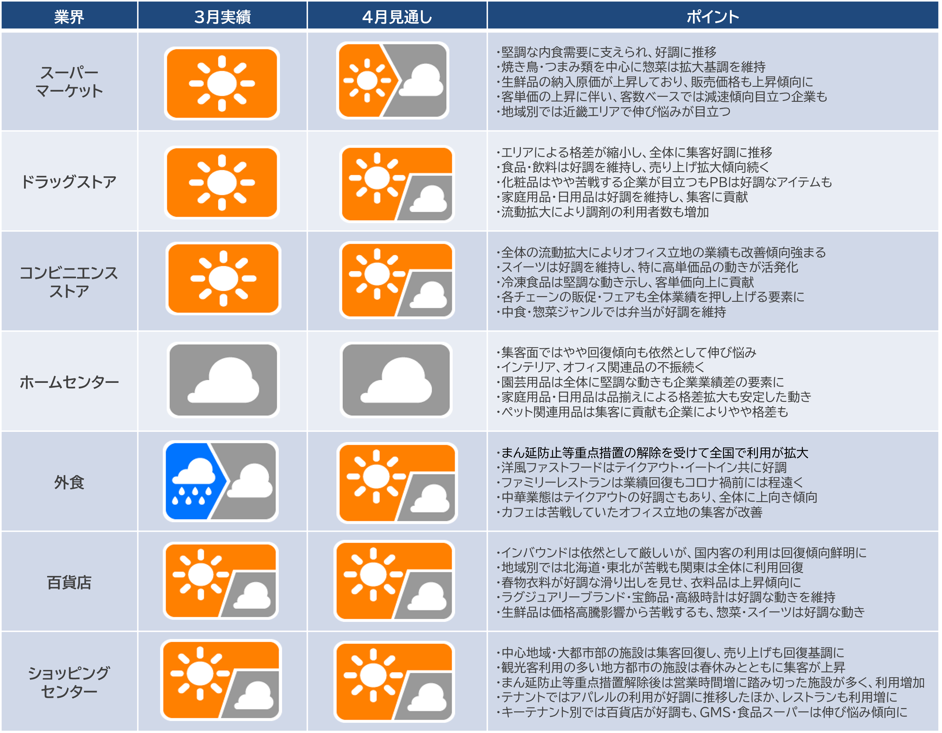 CCCマーケティング株式会社(本社:東京都渋谷区、代表取締役社長:田代誠)にて、『暮らす人と共に歩み、共に考えるシンクタンク』をコンセプトとする「CCCマーケティング総合研究所」(以下「CCCマーケティング総研」)は、2022年3月の「産業動向レポート」および「産業天気予報(https://www.cccmk.co.jp/thinktanks/industry-14)を発表いたしました。