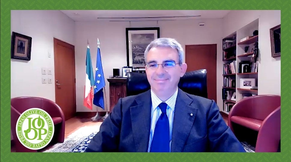 Japan Olive Oil Prize が今年で記念すべき10周年を迎えることをこころから祝福します。イタリアと地中海の主な美食製品の1つであるエキストラバージンオイルを主軸としたイベントを開催してくれた在日イタリア商工会議所に感謝します。エキストラバージンオリーブオイルの日本での更なる消費を支援するだけでなく、地中海式ダイエットを促進することを目的としているため、オリーブオイル生産者にとって重要な任命となっています。いろいろな制限があったにもかかわらず、今年は多くの参加者にリーチすることができました。イタリア産のエキストラオリーブオイルは、日本市場でますます成功を収めているイタリアの最高品質の製品の1つとして世界的に認められています。この素晴らしい商品を創造しているイタリアのエキストラバージンオイルの生産者プロデューサーの存在感もとても誇りに思います。