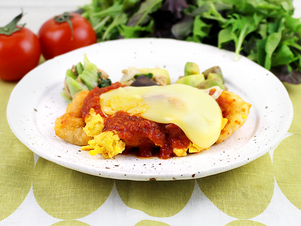 チキンのトマトチーズがけのリニューアルです。たんぱく質、ボリュームはそのままに鶏むね肉を食べやすい大きさに変更致しました。ソースも具材感が増して、よりトマト感を楽しんでいただけます。