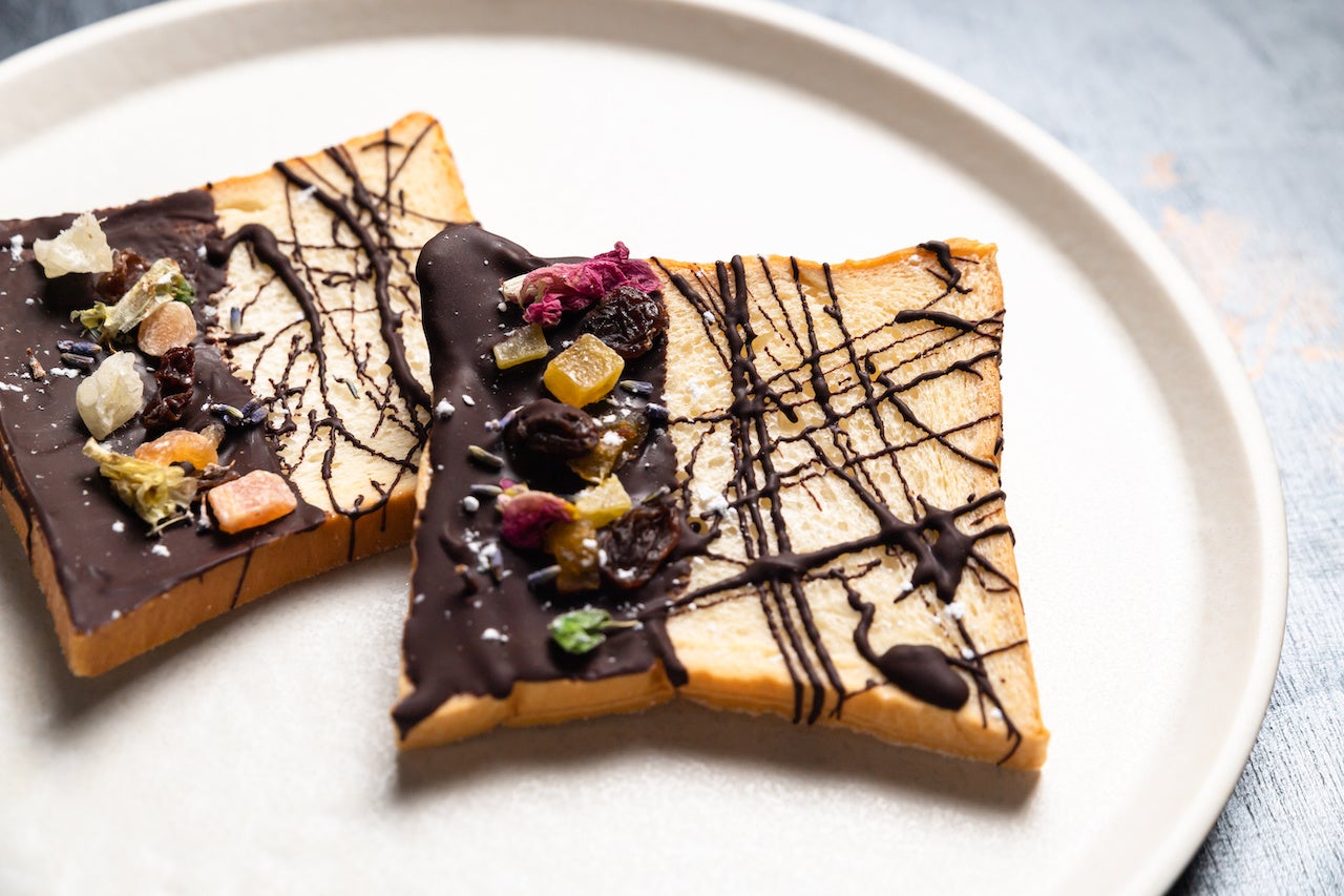 サクサク食感の『生』食ラスクを濃厚なチョコレートでコーティングし、エディブルフラワーやドライフルーツで豪華にデコレーション。「茅ヶ崎オリジナルブレンド塩」を生地に使用したラスクをアクセントに、上品な甘さとラベンダーの香りが口いっぱい広がります。