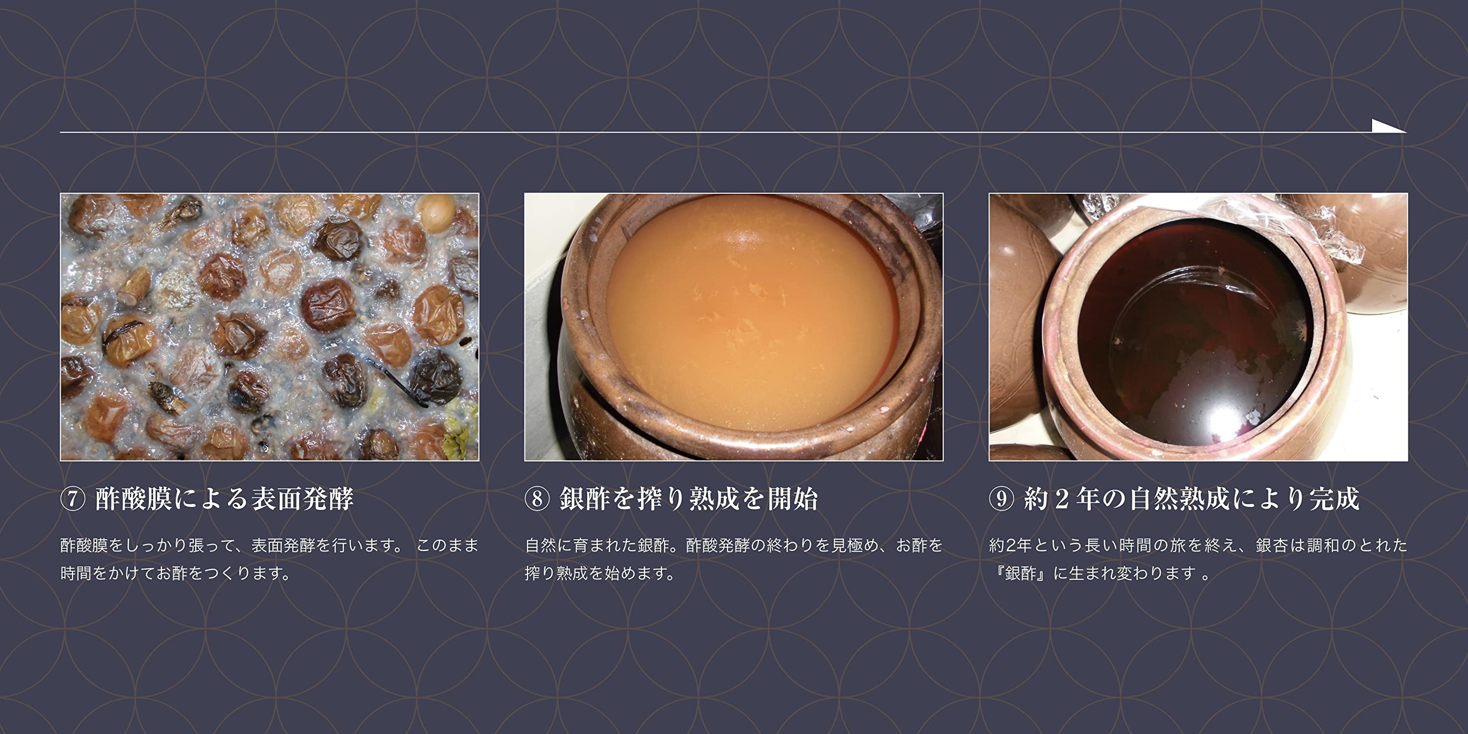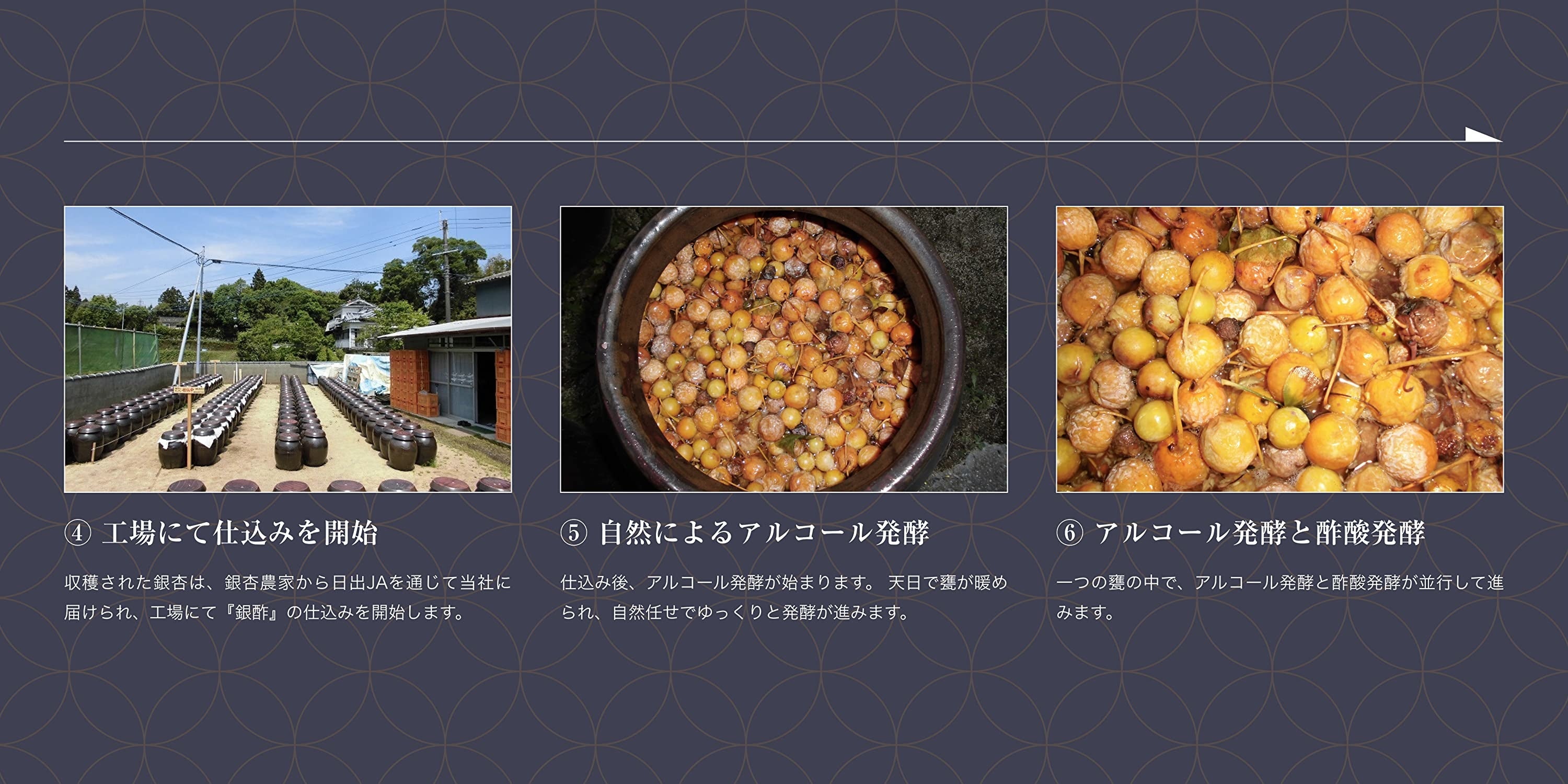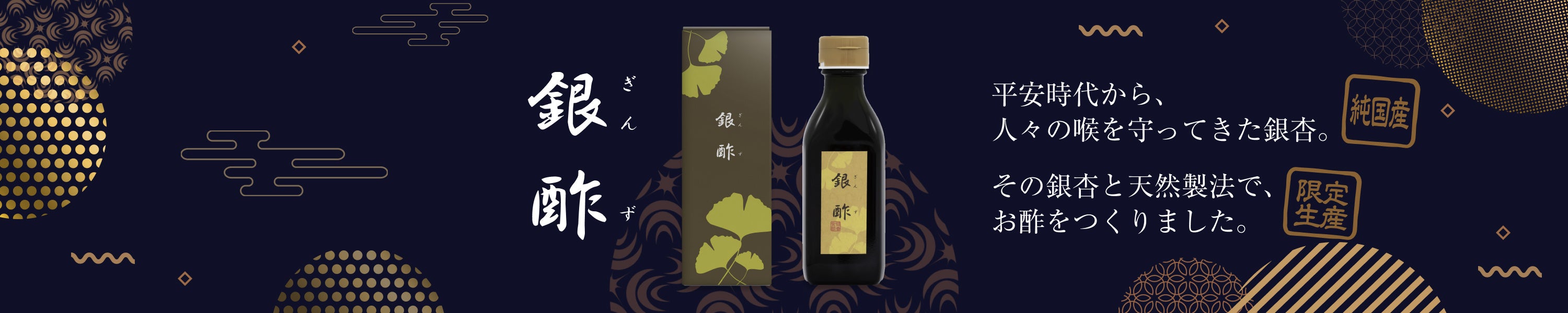 ”銀杏のみ”を主原料としてつくった醸造酢。特許製法により発酵・熟成させた、純国産・限定生産のお酢です。