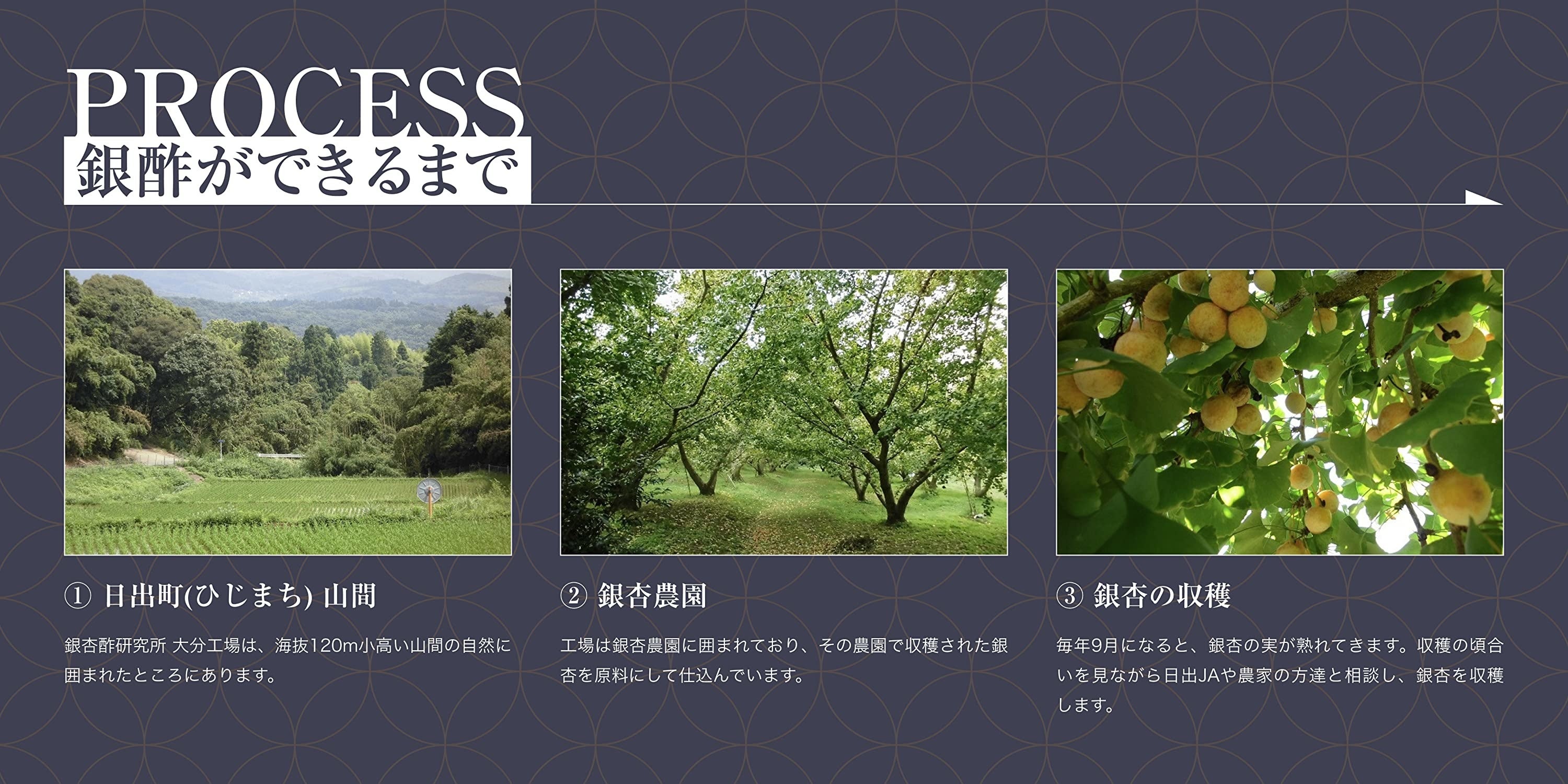 1.主原料として”銀杏のみ”、銀杏を丸ごと使ったお酢は他にありません。